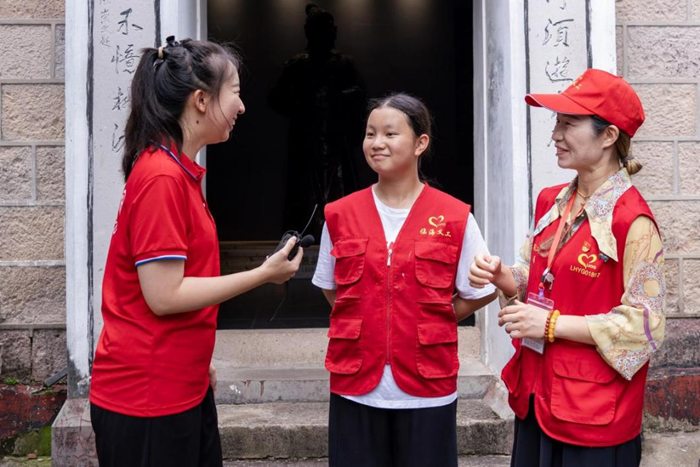 8月30日,在浙江省台州市临海市桃渚镇城里村进行志愿服务的志愿者母女接受“文明中国”主题采访报道组采访。新华网 钟奕 摄