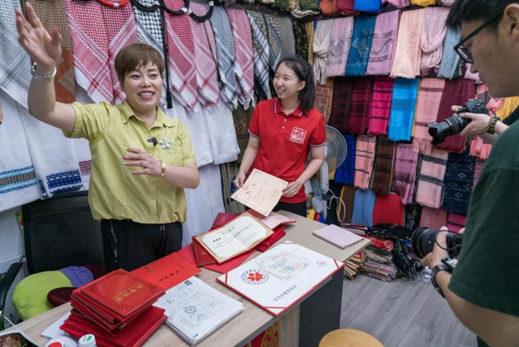 9月1日,浙江省金华市义乌国际商贸城经营户、“义乌好人”姚丽芳向记者介绍20年来如何靠诚信一点一点赢得来自世界各地的客户以及她爱心助学的故事。 新华网 钟奕 摄