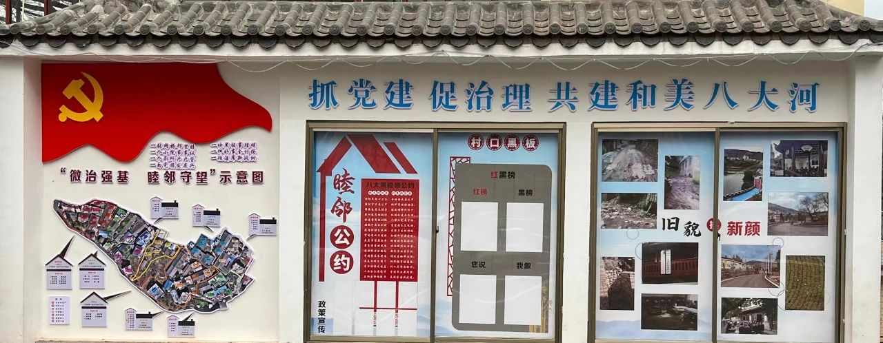 一块黑板,事理明。八大河村在各组常设村口黑板,集“红黑榜”、文明新风、政策宣传等老百姓最关心的内容为一体,引导村民的参与理念实现“不想看、没话说”向“主动看、共商议”的积极转变。其中,最受欢迎的是“红黑榜”,由村“三委”干部、村民小组长组成的评议会,以睦邻公约为标尺,定期评出“红黑榜”名单并公示,每到榜单张贴的日子,村口黑板前总是围满了村民。红榜奖励、黑榜整改的约束机制正在引导村民形成良好的行为习惯。