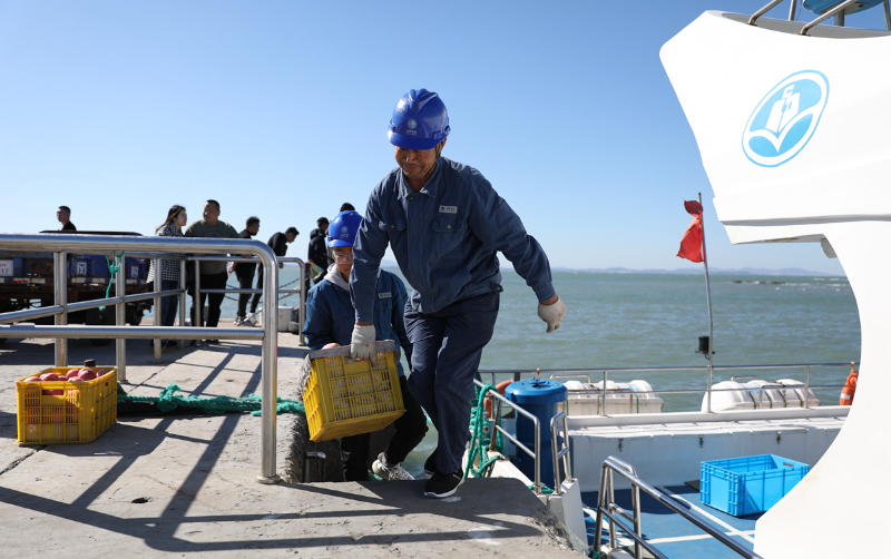 孙涛为岛上居民代送物资。山东省文明办供图