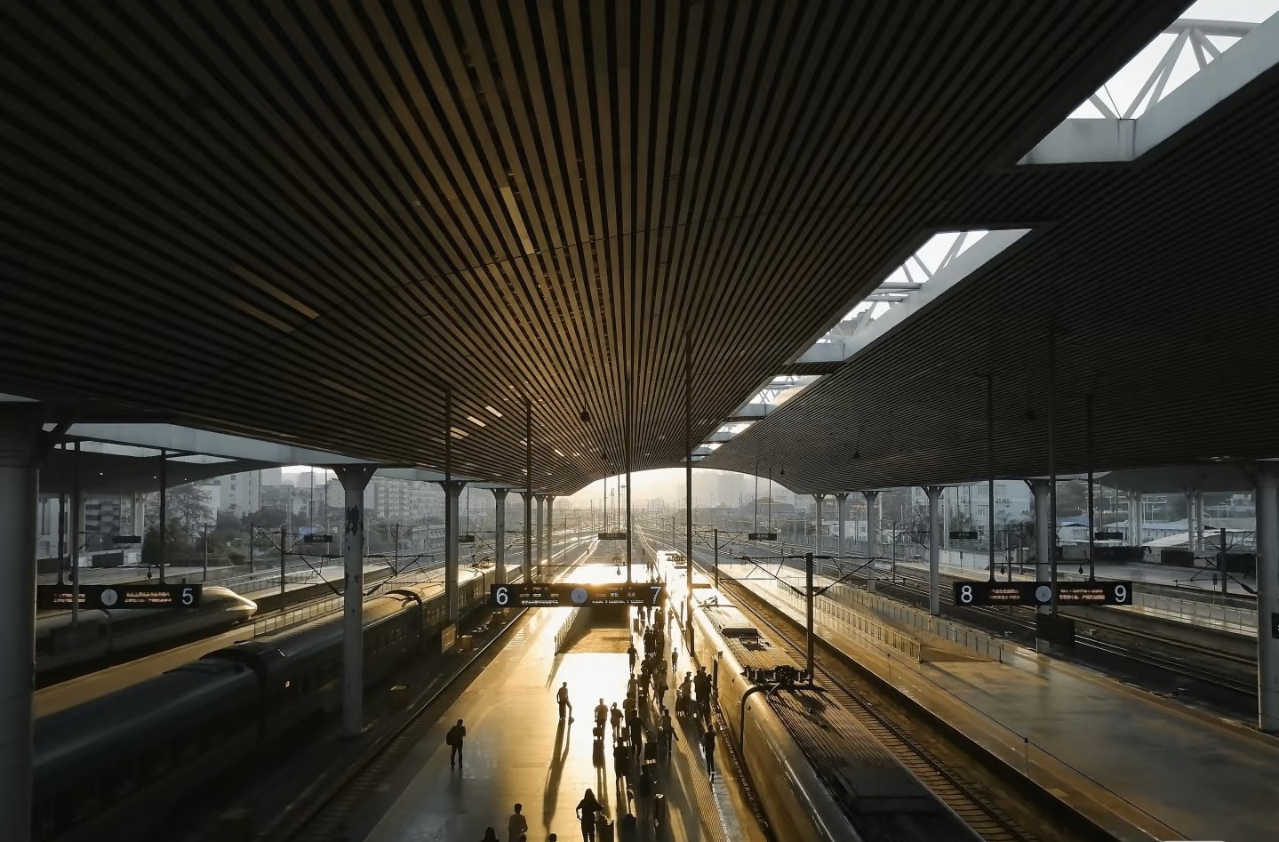晨光照耀福州站。