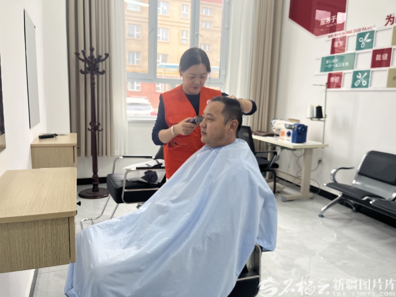 10月20日,“一剪美”理发店店主陈洁参加幸福社区开展的公益活动,给小区居民免费理发。石榴云/新疆日报记者 白素君摄