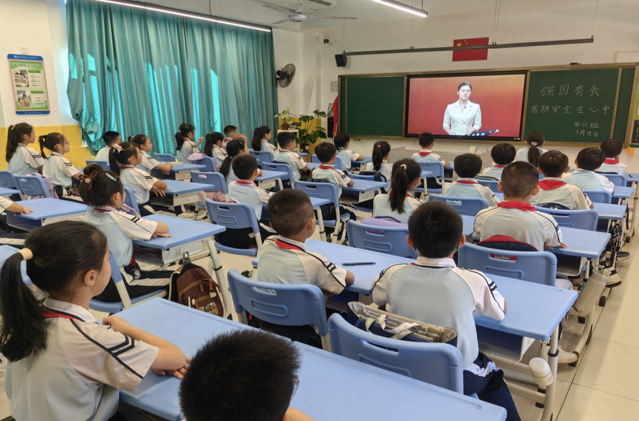 “丁零零……”9月15日,海口市滨海第九小学全体学生整整齐齐坐在教室内,认真学习第一堂“大思政课”。小学课程以“众志成城”为主题,深情回顾了全中国人民万众一心、共赴国难的历史。