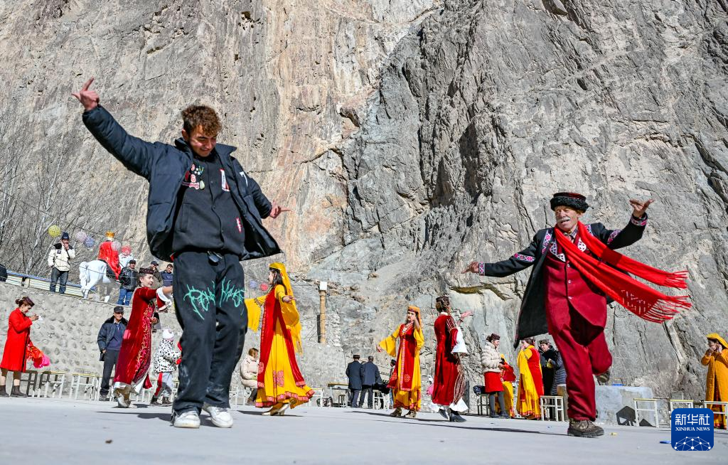 1月7日,村民在新疆塔什库尔干塔吉克自治县阿依克日克村的小广场上跳舞。新华社记者 陈朔 摄