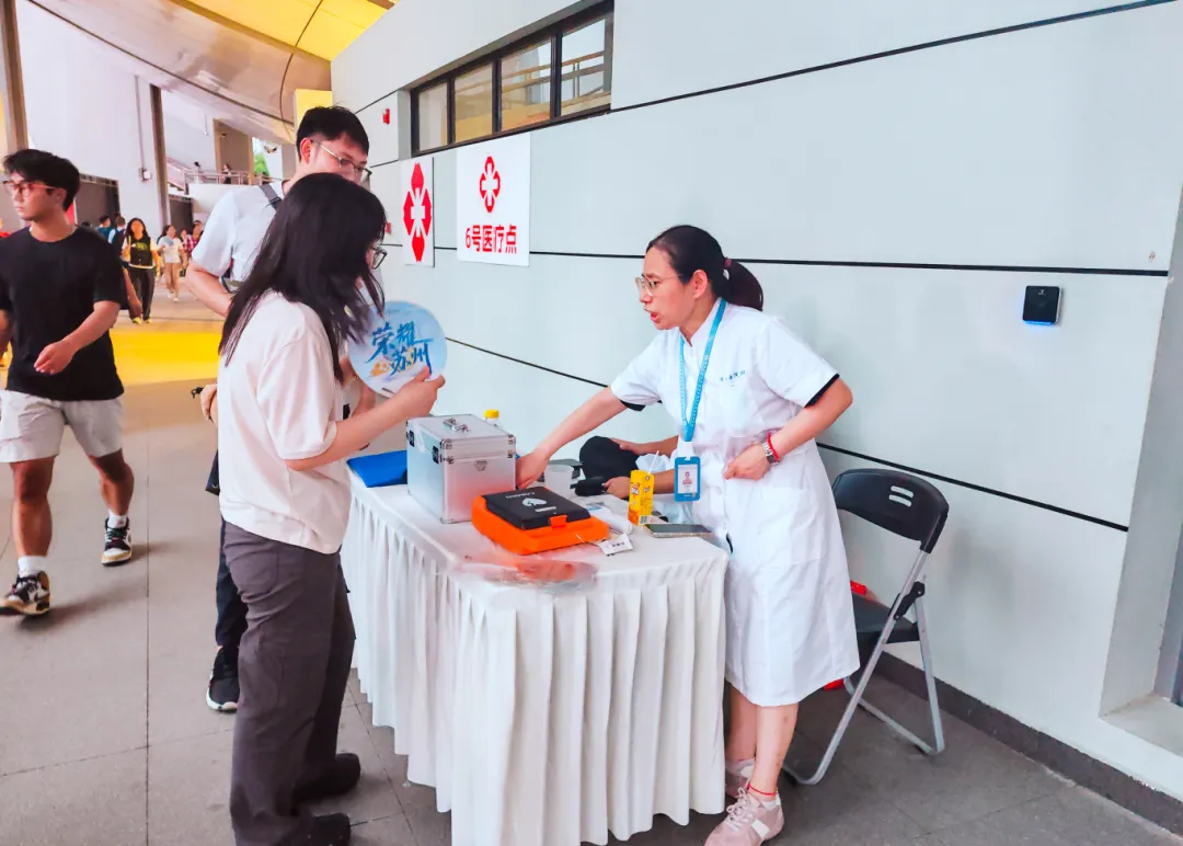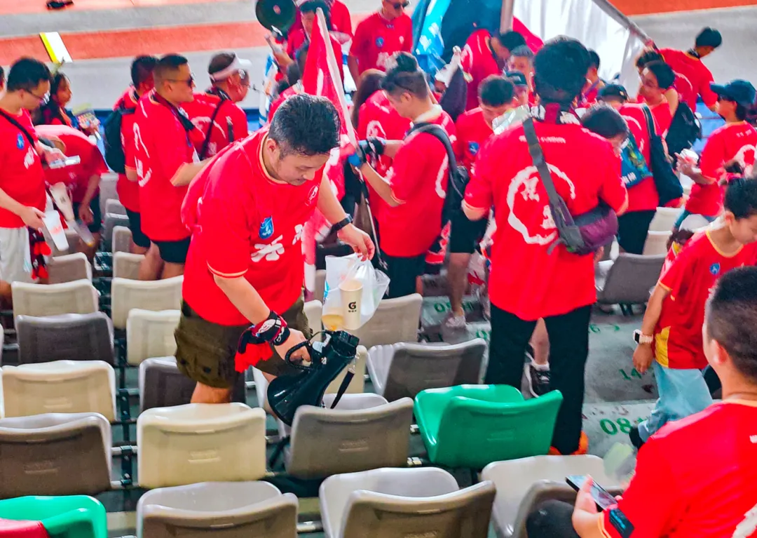 文明不仅体现于观众,也闪烁在志愿者的微笑里、细节中。为了保障观众的饮水需求,苏州赛区设置了多个饮水点,志愿者们不停穿梭于人群中,微笑着为观众递上一杯杯清凉的饮用水,还不忘贴心地提醒:“小心打翻,请慢慢饮用”“这边可以续水,我来帮您”。