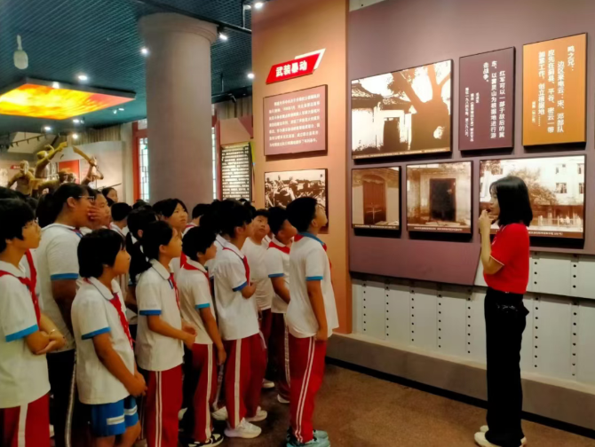 学生们聆听盘山革命展讲解。