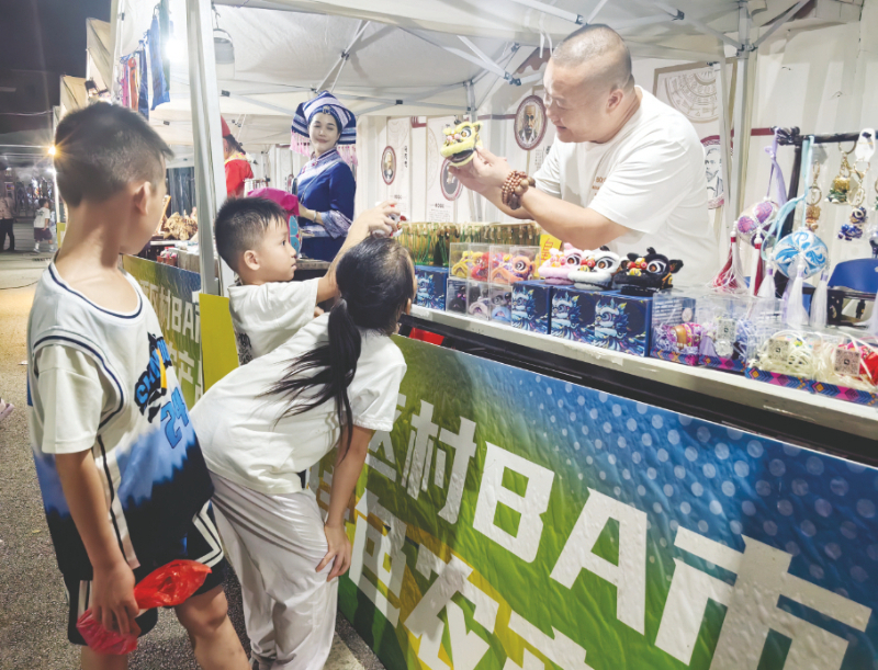 “邕BA”赛场旁,醒狮挂件、狮头摆件等醒狮文化及相关文创产品展销受到孩子们的欢迎。记者 林显威 摄